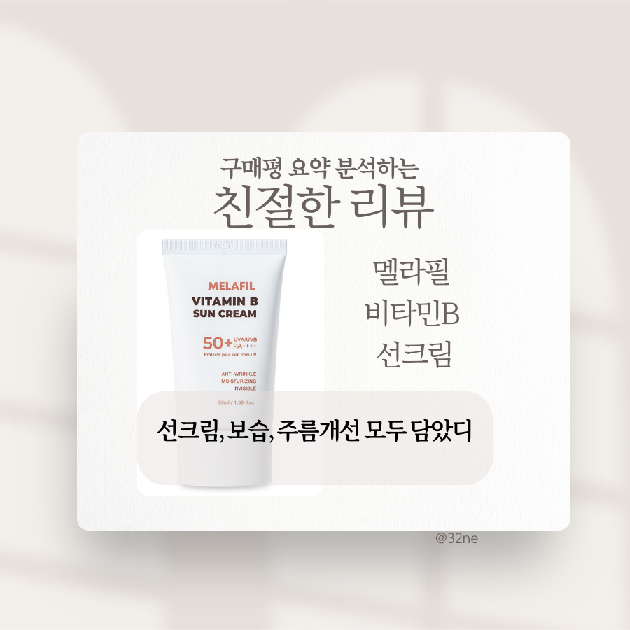 자외선 차단은 이제 선택이 아닌 필수인 시대죠. 뜨거운 햇볕 아래에서도 건강한 피부를 지키기 위해 선크림은 빼놓을 수 없는 데일리 아이템이 되었습니다.최근 선크림 트렌드는 단순한 자외선 차단 기능을 넘어 눈시림 없이 순하고, 끈적임 없는 산뜻한 사용감, 그리고 촉촉한 보습력까지 갖춘 제품을 선호하는 추세입니다.특히 멜라필 비타민B 선크림은 눈시림 없는 편안함, 유분기 없이 촉촉한 마무리감으로 많은 사랑을 받고 있는데요.이번 글에서는 멜라필 비타민B 선크림 50g에 대해 자세히 알아보고, 여러분의 피부 타입에 맞는 선크림 선택에 도움을 드리고자 합니다. 자세히 제품 소개 멜라필 비타민B 선크림은 SPF50+ PA++++의 강력한 자외선 차단 기능을 제공하면서도, 로션처럼 부드럽고 촉촉한 발림성을 ..