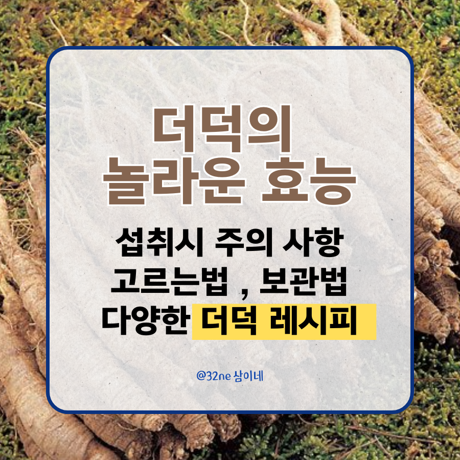 산 속의 진주라 불리는 더덕! 특유의 향긋한 향과 아삭한 식감으로 입맛을 돋우는 더덕은 건강에도 좋은 식재료로 알려져 있습니다. 면역력 증진, 호흡기 건강 개선 등 더덕의 다양한 효능은 오랜 시간 동안 많은 사람들에게 사랑받는 이유 중 하나입니다. 하지만 몸에 좋은 더덕이라도 체질에 따라 주의해야 할 점이 있습니다.이 글에서는 더덕의 효능과 주의사항, 고르는 방법, 보관법, 그리고 더덕을 활용한 다양한 요리법까지 자세하게 알려드리겠습니다. 더덕에 대한 궁금증을 해결하고 건강도 챙기는 유익한 시간 되시기 바랍니다.  목차더덕의 다양한 효능더덕 섭취시 주의사항더덕 고르는 법과 보관법더덕을 활용한 다양한 레시피 더덕의 다양한 효능 더덕! 그 독특한 향과 아삭한 식감만으로도 벌써 입맛이 다셔지지 않나요? 하지만..