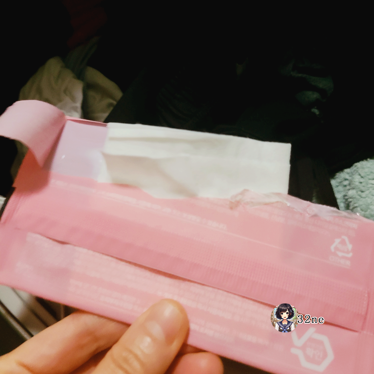 이렇게 앞에서 뽑아 쓸수 있도록 되어 있어요. 하지만 저는 불편해서 한쪽면을 가위로 도려내서 꺼내 쓸수 있도록 했어요.
